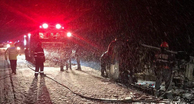 Microbuz cu moldoveni răsturnat la Crețești