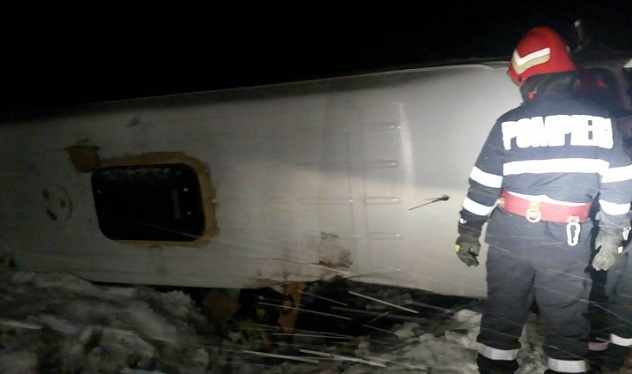 Un microbuz înmatriculat în Republica Moldova, cu 13 persoane la bord, s-a răsturnat în această seară pe Drumul European 581, în dreptul localității Crețești.
